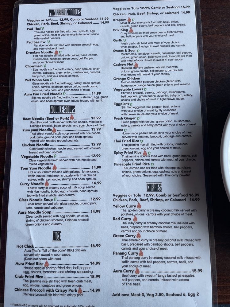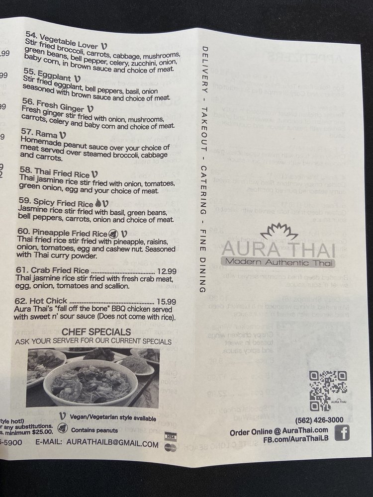 Escape to the flavors of Thailand at Aura Thai in Long Beach, CA. Offering a variety of vegan and vegetarian options, this casual dining spot is perfect for a delicious lunch or dinner. Aura Thai also caters to groups, kids, and even offers delivery for those cozy nights in. Don't miss out on their famous glass noodle soup, pad Thai, yellow curry, Penang curry, and pad see ew, all served hot and fresh. Indulge in unique beverages like the Coconut Palm Sugar Drink and the Tom Yum Beer, complemented by delightful desserts like Mango with Sweet Sticky Rice or Homemade Coconut Ice Cream. From the welcoming ambiance to the attentive service, Aura Thai promises a flavorful and memorable culinary experience.